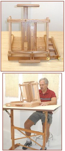 Ravenna Table Top Box Easel...A roomy portable easel that securely holds your canvas (up to 34 inches) and your painting supplies. Made from seasoned hardwood it has an easily accessed side drawer plus a handy carrying handle.