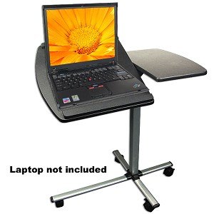 Save space and compute anywhere with this Split-Top Laptop Caddy! Its height-adjustable and split-top design lets you work in comfort! It comes with black wooden shelves, silver metal frame stands and 4 casters for easy mobility! Ideal for home, office or at the dorm. This Split-Top Laptop Caddy lets you enjoy convenience and mobility wherever you need it! Small Shelf Dimensions: 0.5 x 17.75 x 11.5-inches (H x W x D, approximate) Large Shelf Dimensions: 1.25 x 17.75 x 17.5-inches (H x W x D, approximate) Overall Dimensions: 28 - 37 x 17.75 x 29-inches (H x W x D, approximate