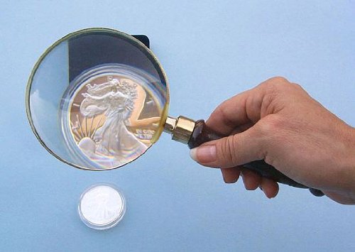 - The magnifier is 9 1/4 inches (23.5 cm) long and weighs 9.8 ounces (278 grams). The magnifier with hardwood case weighs 2 pounds (907 grams).