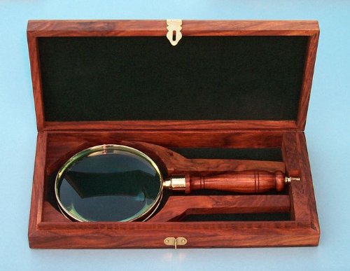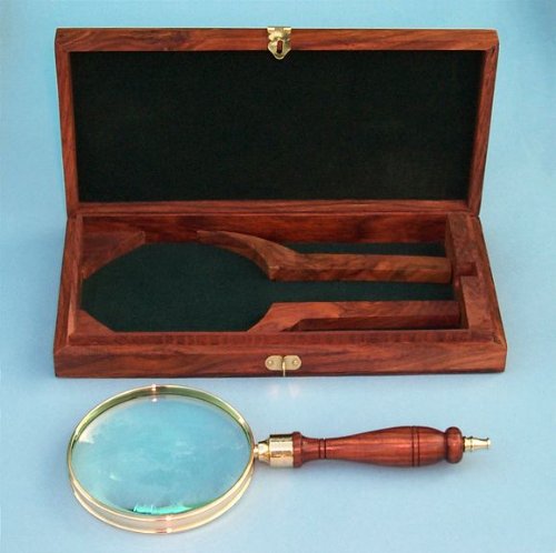 Buy Brass and Hardwood Vintage Style Craft, Hobby, Jeweler's Hand Magnifier with Hardwood Storage and Desktop Display Case Now
