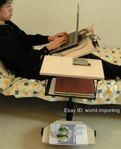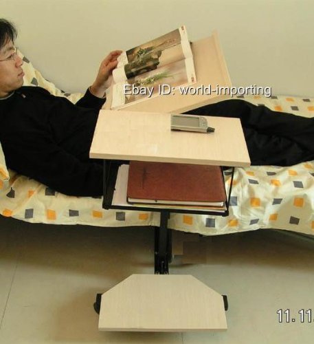 Even if you go ahead and drill some holes in the pole for the screw-knobs to slide into, it is still shakey. The email warns you to counterbalance it with something heavy (books or a futuristically narrow printer), but that doesn't matter since the weakness is really in the topheavy table and inadequate support pole. The laminate covered particleboard top is too heavy for the construction, and even using just that portion laying on my bed, got very uncomfortable wrists on the support bar. The tray, therefore, is too heavy for the support stand.