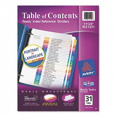 Buy Avery Ready Index Contemp Table/Contents Dividers, 31-Tb, 1-31, Letter Size, Assorted, 1 Set per Pack (11129) Now