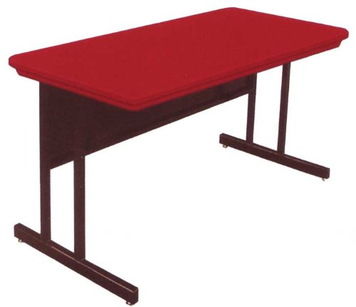 * Light Weight Blow-Molded Plastic tops * Sturdy all steel frames, with adjustable nylon glides * Desk and keyboard height tables have steel modesty panels with wire management trough on inside bottom edge * Modesty panels have 1 wire management hole on 24x48 size, and 2 on 30x60 and 30x72 sizes. * Adjustable height tables come with both tamper proof set screws and large, easy to use plastic knobs. * Perfect for schools, libraries, churches, and training rooms. * Quick and easy assembly 24" x 48" Desk Height Workstation (as shown) is sold here. Measures 24"D x 48"W x 29"H overall. Shpg. wt. 45 lbs. PRICE INCLUDES FREIGHT! Please allow 2 weeks for delivery.
