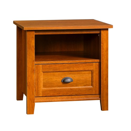 Sauder Woodworking Whistler Collection end table is constructed of environmentally friendly engineered wood with a laminate Shaker Cherry finish.End table features one drawer with metal runners and safety stops. Open shelf provides additional storage.Ships ready to assemble.