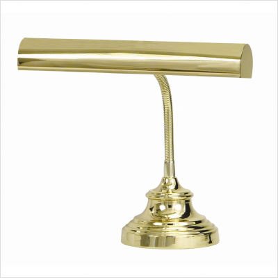 Features: -Two light gooseneck piano / desk lamp. -Polished brass finish. -Height adjusts from 3.5'' to 12.5''. -Shade swivels to direct light. -Switch: In-line, 6'' from base. Specifications: -Accommodates: (2) T10 incandescent bulbs (not included). -Cord: 108'' Brown. -Bulb wattage: 40W. -Base dimensions: 6'' W. -Shade dimensions: 14'' W. -Overall dimensions: 3.5-12.5'' H x 14'' W.
