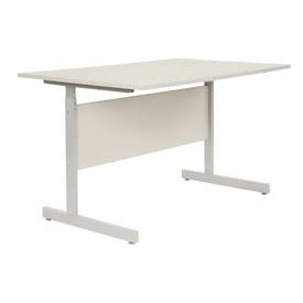 Height Adjustable Workcenter This computer work center allows height adjustment to help position the user at an optimal working height. Work surface is a non-glaring, mar-resistant laminated top that supports up to 350 lbs. and allows 26-28 height adjustment. The sturdy 2" x 1" tubular steel frame is made with 16 gauge steel and finished with scratch resistant baked enamel. Computer workstations include a full-width modesty panel that provides extra support and adjustable leveling glides to stabilize workstations on uneven floors. Easy assembly. Purchase Optional Utility Shelf that easily attaches to modest panel to provide added storage space under the work surface. 31.25 L. 51.50 W. 2.50 H.