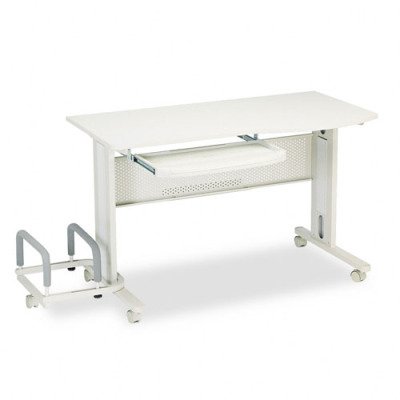 Pull-out keyboard shelf with wrist rest that flips up to reveal pencil storage. Table top curves forward for comfortable mousing. Overall: 47-1/4w x 24d x 28-1/2h including CPU holder. Stand Accessory Type: N/A; Material(s): N/A; Platform Type: N/A; Width: 47 1/4 in.
