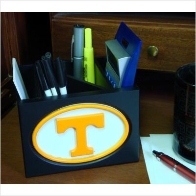 C0536-Tennessee A great way to show your school spirit and have a place to organize pens, pencils, scissors, envelopes etc. on your desk. Maximize your workspace with our compact organizer featuring four dividers. Features: -Desktop Organizer. -University of Tennessee collection. -The athletic logo is displayed on a black finish. -Material: Wood. -Maximize your workspace with our compact organizer featuring four dividers. -Overall dimensions: 4'' H x 6'' W x 5'' D.