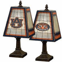 One of the most popular additions to the Memory Company lighting collection, the art glass table lamp sports Auburn Tigers colors and logos on two sides! Inspired by the classic Mission-style art-glass of the early 20th century, this elegant lamp sits on a brass-based resin stand and is a lovely addition to any decor.