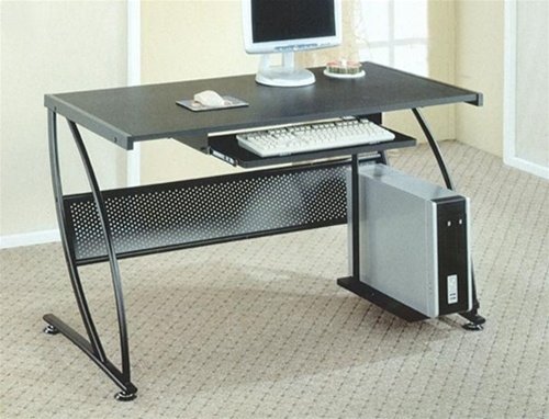 This contemporary desk offers a sleek modern design crafted with durable steel. The size provides for more space and the design creates a look that is both attractive and simple. Also included are a universal autonomous CPU stand and a sliding keyboard tray. This desk compliments any room and is a great addition to any home office.
