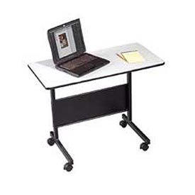 The LT Laptop/Computer table is an economical, all-purpose table. The table measures only 36"W x 18"D to maximize floor space and adjusts in height from 27" to 34" high. The work surface offers space for a laptop and note taking, or use for smaller computer set ups. Mobile table moves on 2" casters (2 locking). Table features a black powder-coated steel frame with a gray top. 18.00 L. 36.00 W.