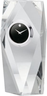This diamond shaped cut crystal table clock features a black museum dial with silver tone accents. Battery included.