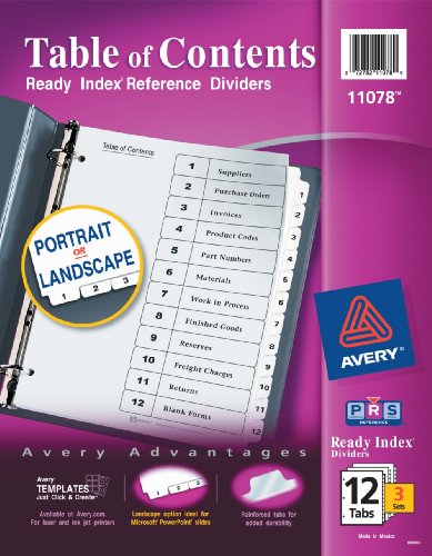 Buy Avery Ready Index Table of Contents Dividers, 12-Tab, 3 Sets (11078) Now
