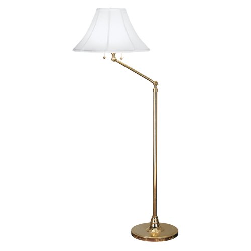 Floor Lamp in Polished Brass finish. Height is adjustable from 51-63.5 inches. Sewn Eggshell shade is 7in top x 19in bottom x 12in side. Dual Bulb Sight Saver System with decorative easy access pull chain. Adjustable pivot points for various heights and angles. Comes with exclusive Sight Saving Light Bulbs. Ideal for reading or other activities where clarity, detail and increased visibility are important. Features: 30 watt compact fluorescent equal to 130 Incandescent watts True color rendering 2100 Lumen output 8,000 Hour Minimum Life Flicker-free start Glare free