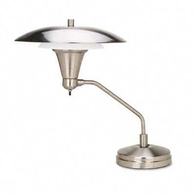 Unique angled arm feature a duo-reflector and a shade that swivels 360 degrees. Art Specialty Art Deco Desk Lamp 16" High Art Deco Desk Lamp, Satin Nickel Finish.