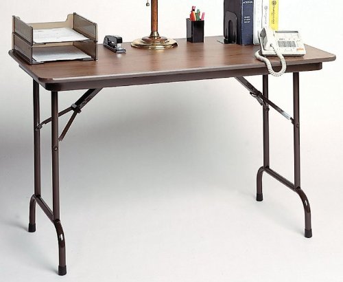 This Correll Banquet Top Adjustable Folding Table - Fast is the most commonly used table for heavy duty home, office, food service and commercial use. The table features 3/4 inch high density particle board core and a backer sheet. With a molding edge, the Folding Table has mar-proof plastic foot caps. This 5/8 inch adjustable height table has an automatic lock-open mechanism. This Folding Table comes in walnut, medium oak, and dove gray top materials with different frame and T-mold colors. It is available in different widths.