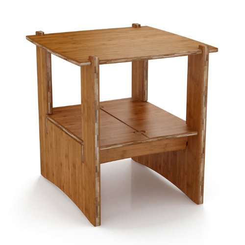 Legare's sustainable and eco-friendly bamboo 22" x 22" End Table in a carbonized amber finish is a matching two-level design with storage for books and magazines underneath. Like the Coffee and Sofa Tables, both surfaces are reversible should one ever get damaged. The Legare Sustainable End Table is a great addition to your living room furniture. Features: Fun to Assemble Manufactured entirely from highly sustainable, organically grown bamboo from the famed moso forests of China, inherently known for its perfect color, grain, density and strength Amazingly simple 2 minute tool-free assembly Modern curvilinear design ideally appeals to young, nomadic urban lifestyles Storage for magazines and keepsakes Reversible surfaces Laminated using E-1 grade VOC-free adhesives. Specifications: Overall Dimensions: 24" H x 22" W x 22" D Weight Capacity: 1000 lbs.