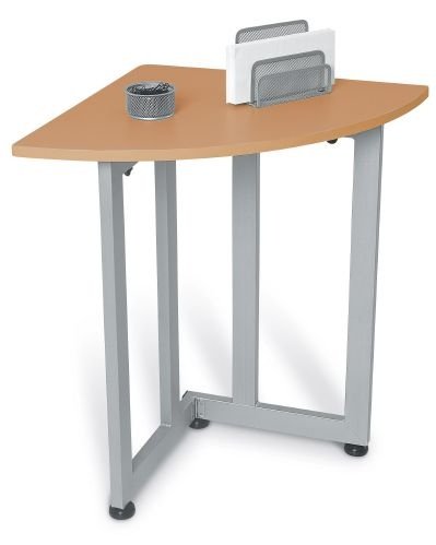 Quarter-Round table makes efficient use of corner space. Leveling glides for uneven floors. Innovative snap & lock technology makes assembly very easy -- with no tools required! Available in Maple/Silver and Graphite/Black. Optional casters available which make it an excellent telephone stand. Scratch-resistant thermofused melamine surface. Includes adjustable leveling glides. Optional casters available (55CAS). Weight capacity 400 lbs. Designed and built for commercial use.