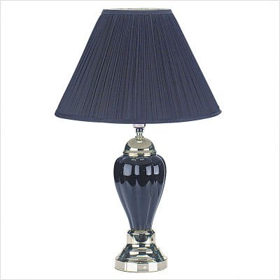 6117BK Features: -Table lamp. -Black finish. -Shade material: Linen. -Body material: Ceramic. -Bold color with silver accents adds a decorative element to any room. -UL listed. -Accommodates (1) 60W standard bulb (not included).