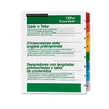 Buy Avery® Office EssentialsTM Table 'N TabsTM Dividers INDEX,BNDR,8-TAB ST,COL H3113E (Pack of 50) Now